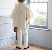 バルーンスリーブのデザインが程よいボリュームを作り出し、華やかさを演出します。また、女性らしさを引き立てる後ろのリボンがポイントです。