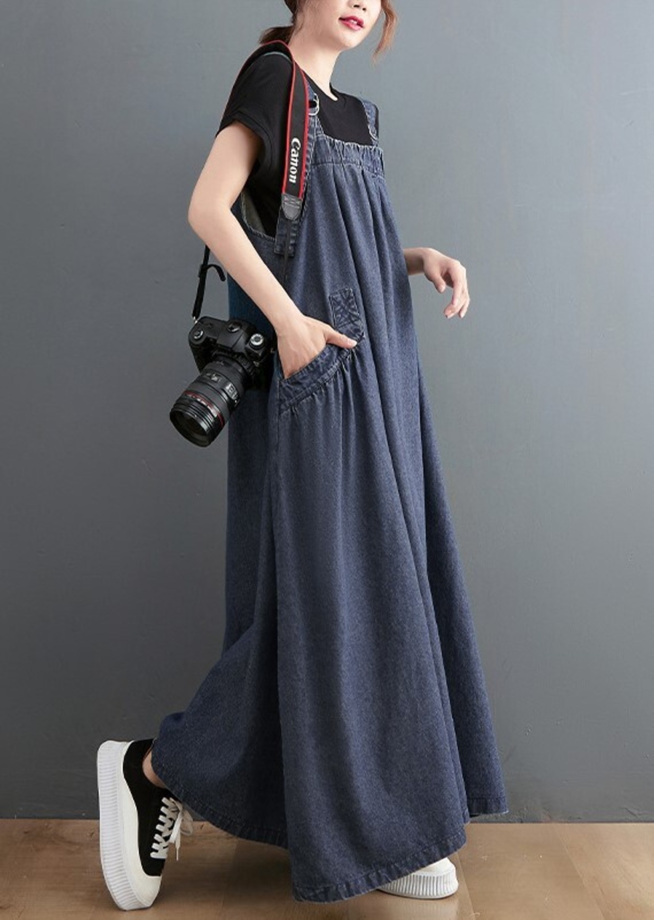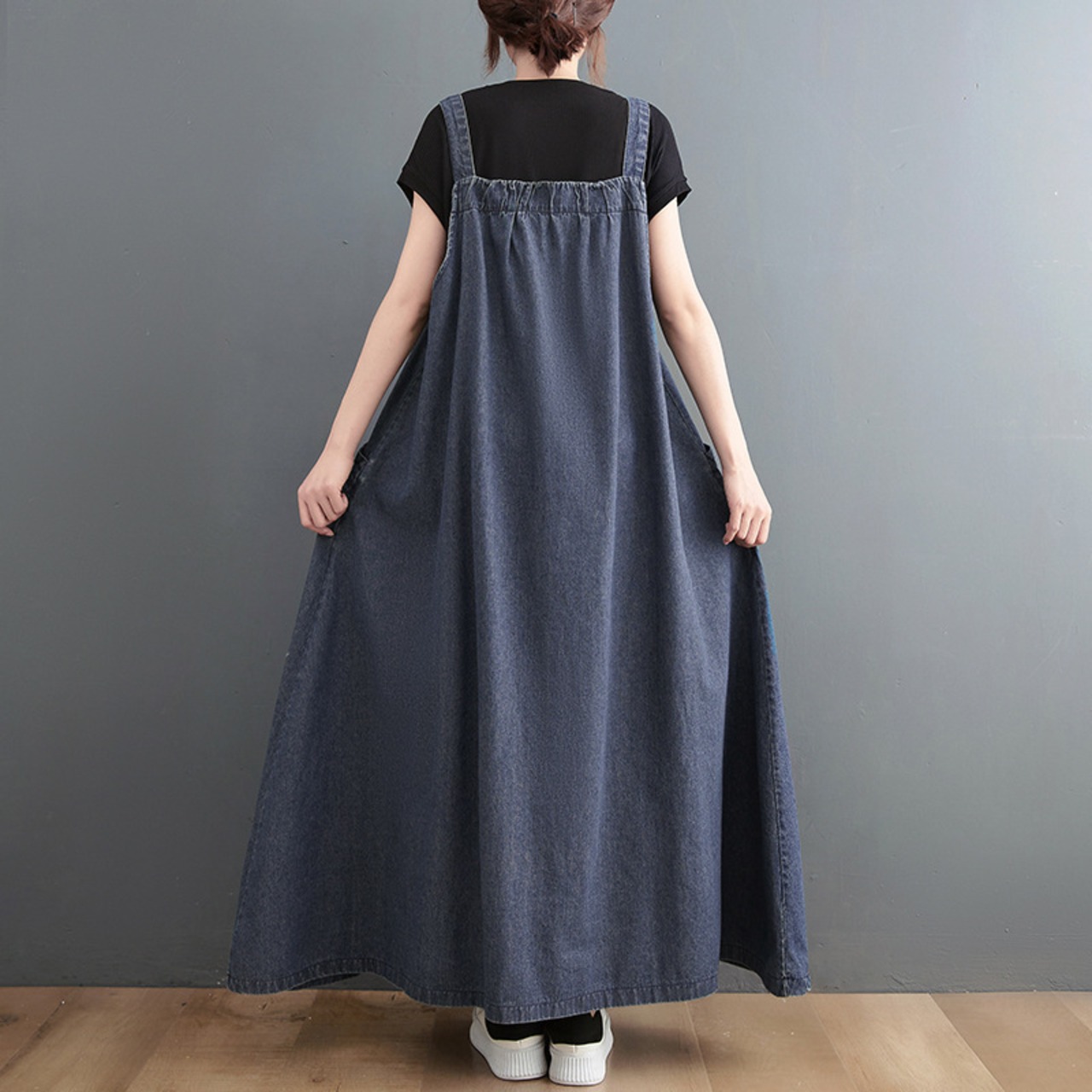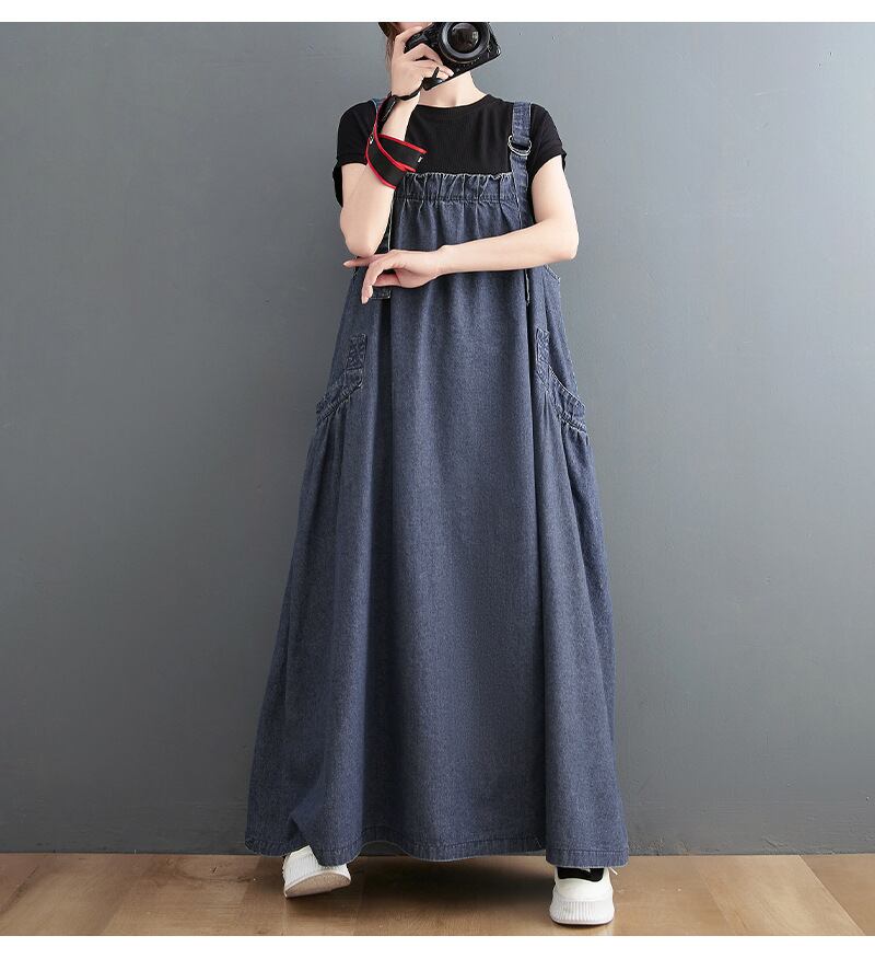 ジャンパースカート Aライン デニムサスペンダー ロングワンピース ロングスカート 大きいサイズ 着やせ