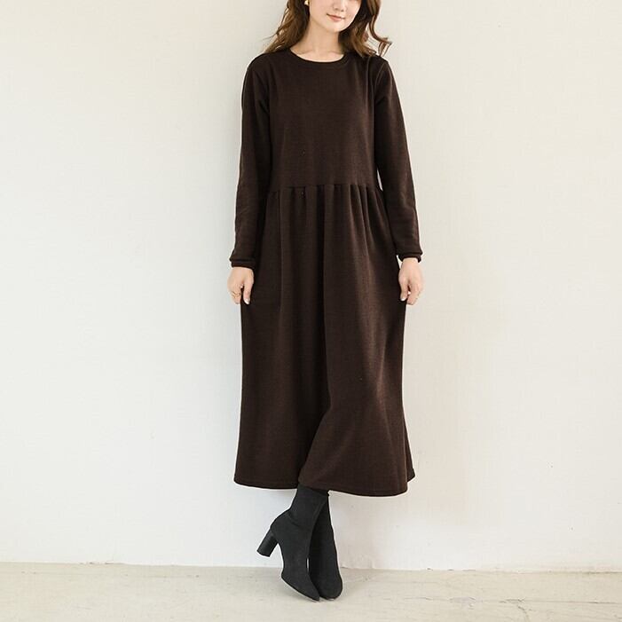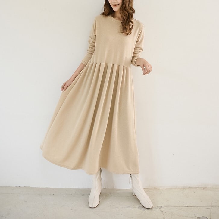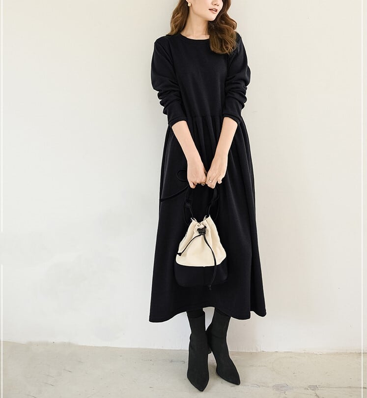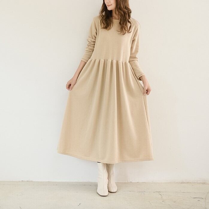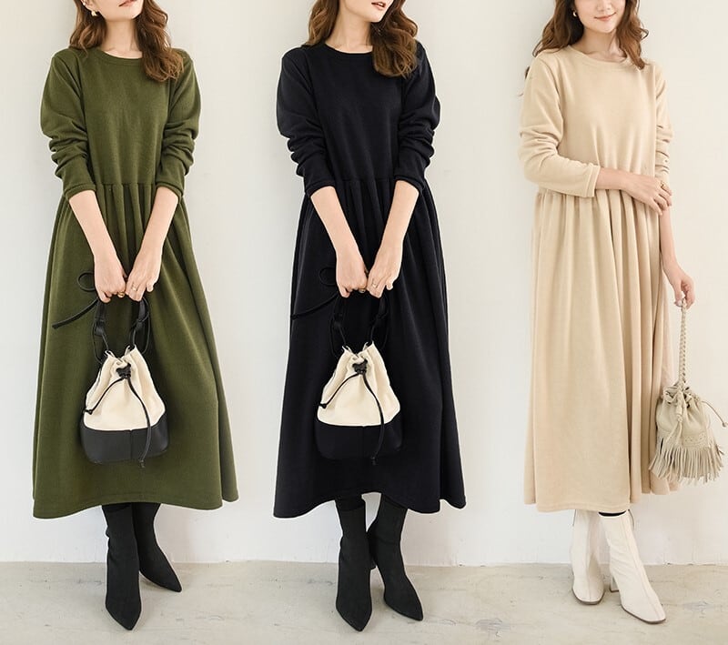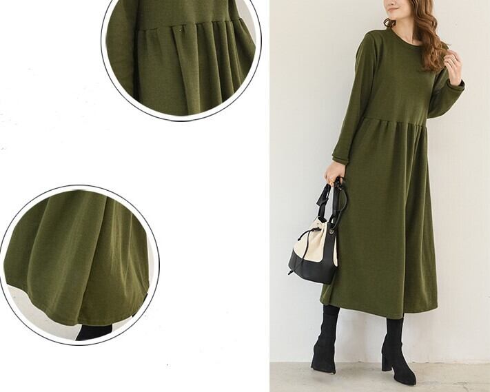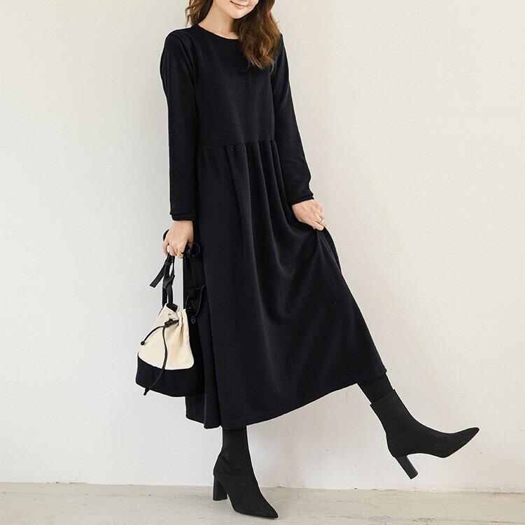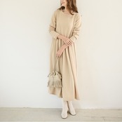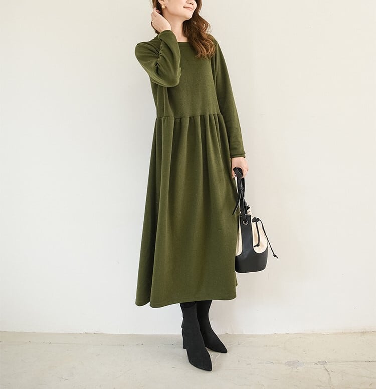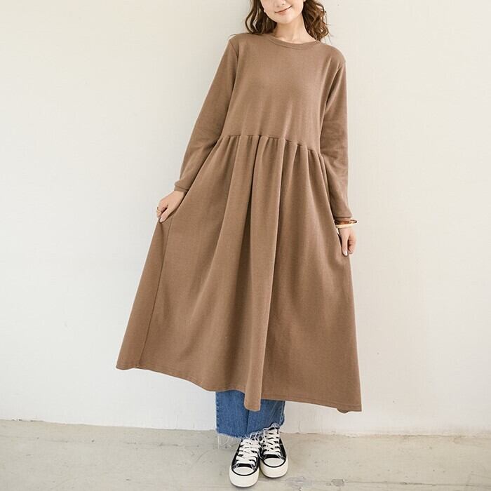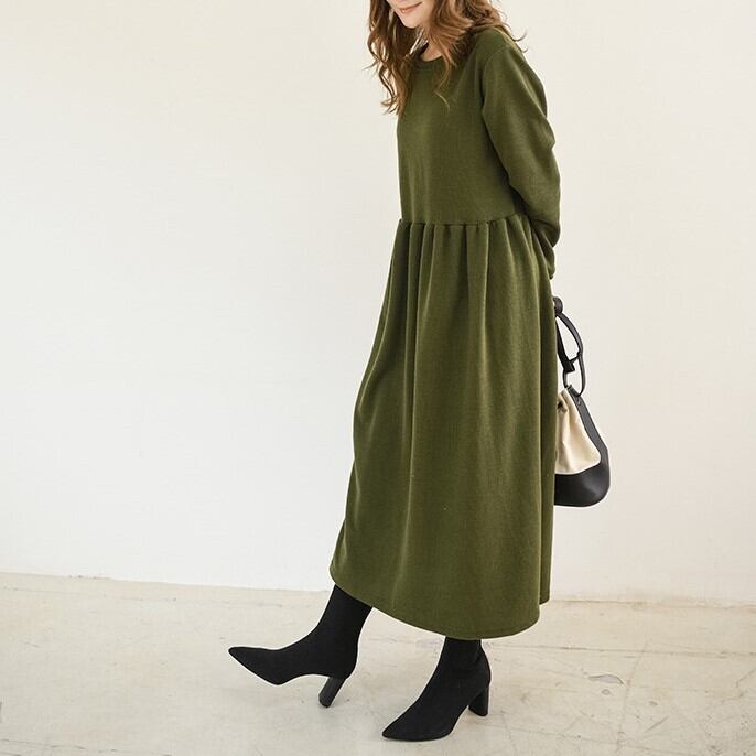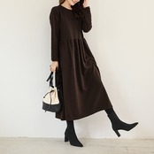 1枚で今年っぽいコーディネートを演出してくれる長袖ワンピースです。クルーネックで首回りスッキリ。ロング丈で気になる体型をすっぽりカバーしてくれるのが嬉しい!