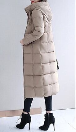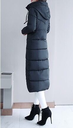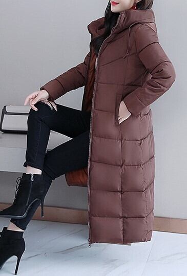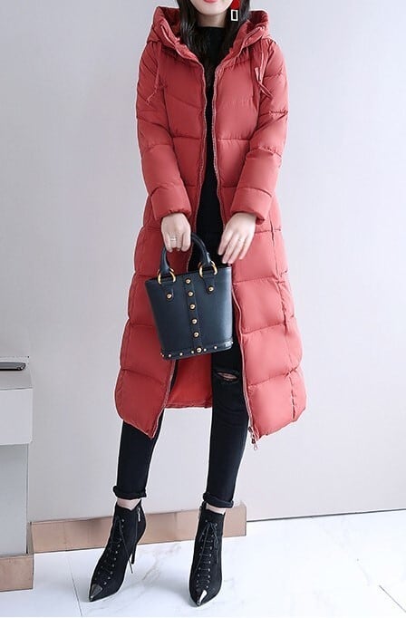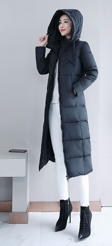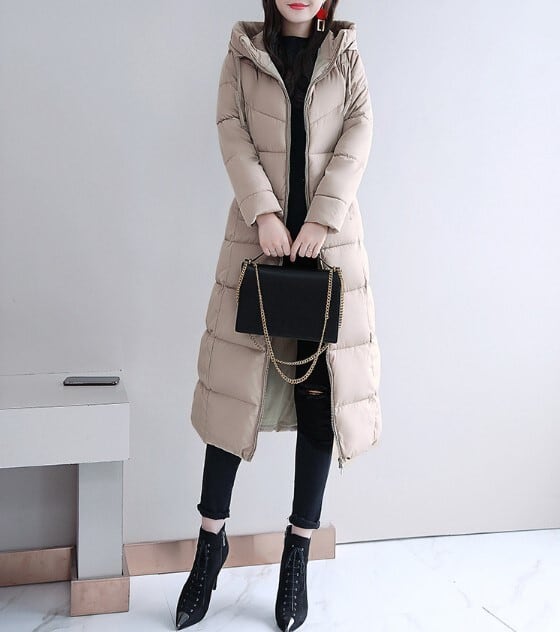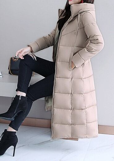 スリムなデザインのダウンジャケットです。膝まであるロング丈で、体をすっぽり隠すので防寒や着やせ対策にもgood。上品なきれいめカジュアルコーディネートになります。