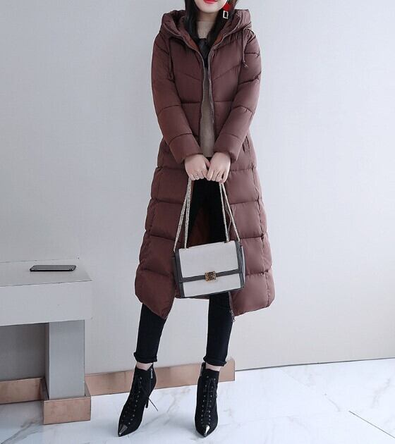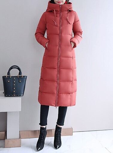 ダウンジャケット ロング コート レディース キルティング 膝丈 中綿 スリム フード付き ジャケット 体型カバー 着やせ 防寒 ベージュ レッド ブラック コーヒー アンティック・ローズ ホワイト 無地